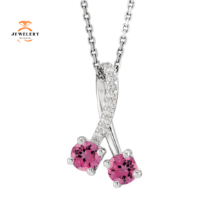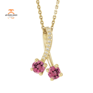 14KT GOLD 0.56 CTW PINK TOURMALINE & 1/5 CTW DIAMOND TWO STONE NECKLACE