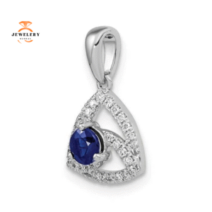 14KT WHITE GOLD DIAMOND & 1/4 CTW SAPPHIRE TRIANGLE PENDANT