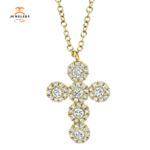 14KT GOLD 0.25 CTW DIAMOND CLUSTER CROSS NECKLACE