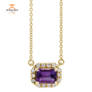 14KT GOLD 0.28 CT AMETHYST & 0.15 CTW DIAMOND EMERALD HALO NECKLACE