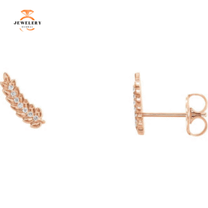14KT GOLD 0.04 CTW DIAMOND LEAF EAR CLIMBERS