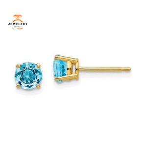 14KT GOLD 1.20 CARAT ROUND SWISS BLUE TOPAZ EARRINGS
