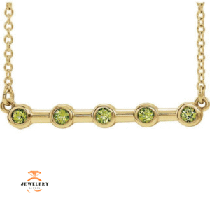 14KT GOLD 1/4 CTW PERIDOT BEZEL-SET BAR NECKLACE