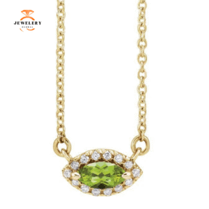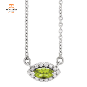 14KT GOLD 0.40 CT PERIDOT & .06 CTW DIAMOND HALO NECKLACE