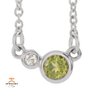 14KT GOLD 0.30 CT PERIDOT & 0.03 CTW DIAMOND 2 STONE BEZEL-SET NECKLACE