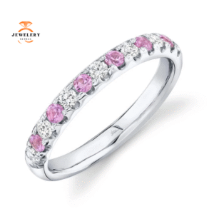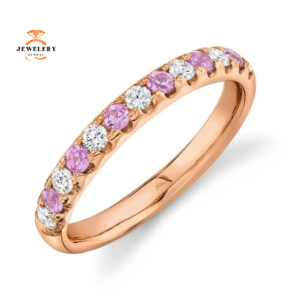 14KT GOLD 0.60 CTW ROUND PINK SAPPHIRE & DIAMOND BAND