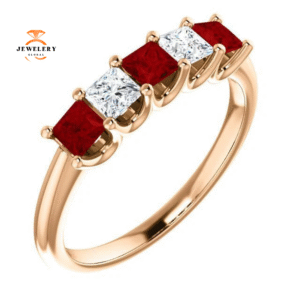 14KT GOLD 0.60 CTW RUBY & 0.33 CTW DIAMOND SQUARE 5 STONE BAND