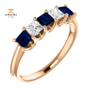 14KT GOLD 0.60 CTW SAPPHIRE & 0.33 CTW DIAMOND SQUARE 5 STONE BAND