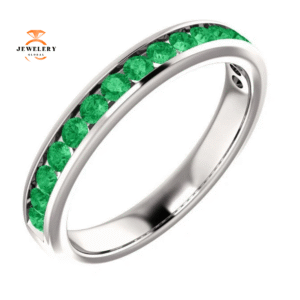 14KT GOLD 0.60 CTW EMERALD FRENCH-SET ANNIVERSARY BAND