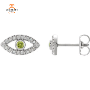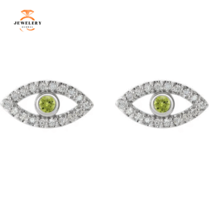 14KT GOLD .10 CTW PERIDOT & .18 CTW DIAMOND EVIL EYE EARRINGS