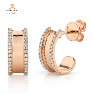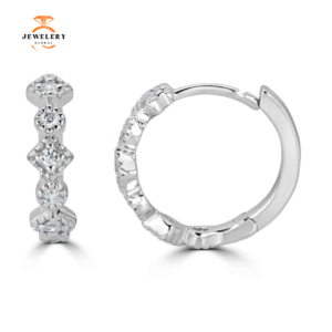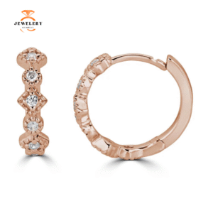 14KT GOLD .12 CTW DIAMOND ALTERNATING SHAPE HUGGIE HOOP EARRINGS