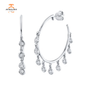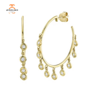 14KT GOLD .45 CTW DIAMOND BEZEL-SET SHAKER HOOP EARRINGS
