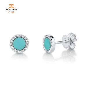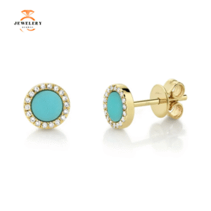 14KT GOLD .47 CTW TURQUOISE & .08 CTW DIAMOND HALO EARRINGS