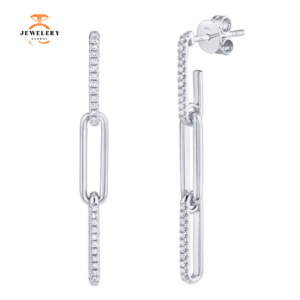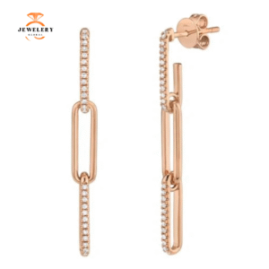 14KT GOLD 0.17 CTW DIAMOND PAPERCLIP LINK DANGLE EARRINGS