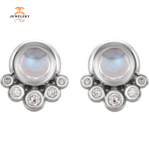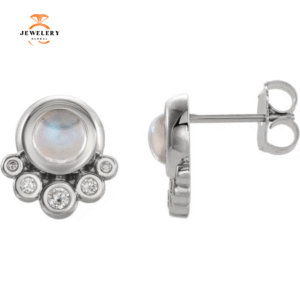 14KT GOLD .65 CT MOONSTONE & 1/8 CTW DIAMOND ACCENT EARRINGS