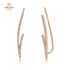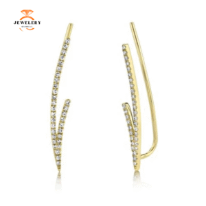 14KT GOLD 0.07 CTW DIAMOND GEOMETRIC EAR CLIMBER EARRINGS