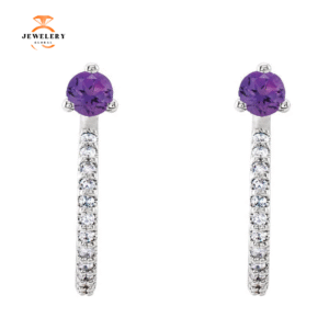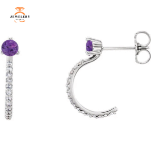 14KT GOLD 0.20 CTW AMETHYST & 0.16 CTW DIAMOND J-HOOP EARRINGS