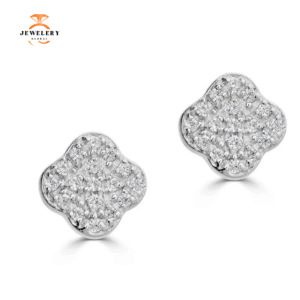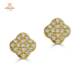 14KT GOLD 0.10 CTW DIAMOND CLOVER STUD EARRINGS