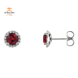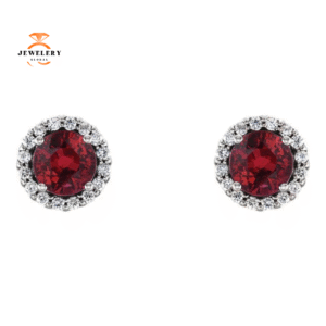 14KT GOLD 0.30 CTW RUBY & 0.12 CTW DIAMOND HALO EARRINGS