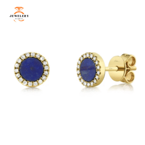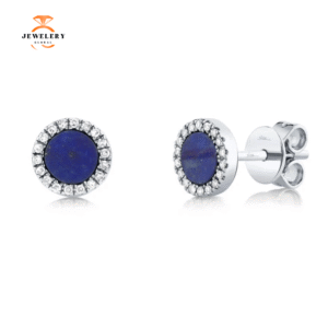 14KT Gold .51 CT Lapis & .08 CTW Diamond Halo Earrings