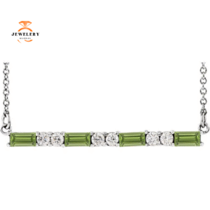 14KT GOLD 0.60 CT PERIDOT & 0.20 CTW DIAMOND ACCENT BAR NECKLACE