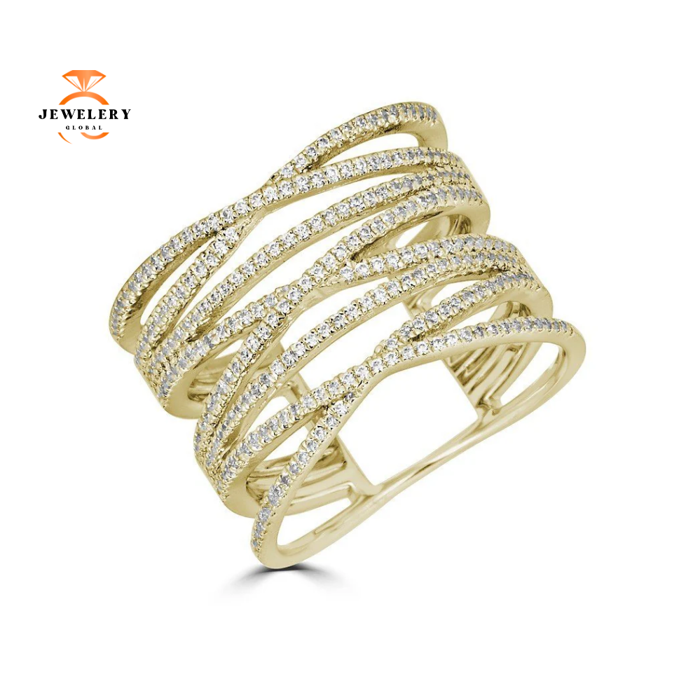 14KT Gold .50 CTW Round Brilliant Diamond Triple Criss Cross Ring. Available in Rose, White, and Yellow Gold.