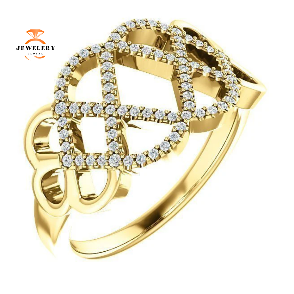 14 Karat Gold Woven Ring with 0.20 Carat Total Weight Round Diamonds.