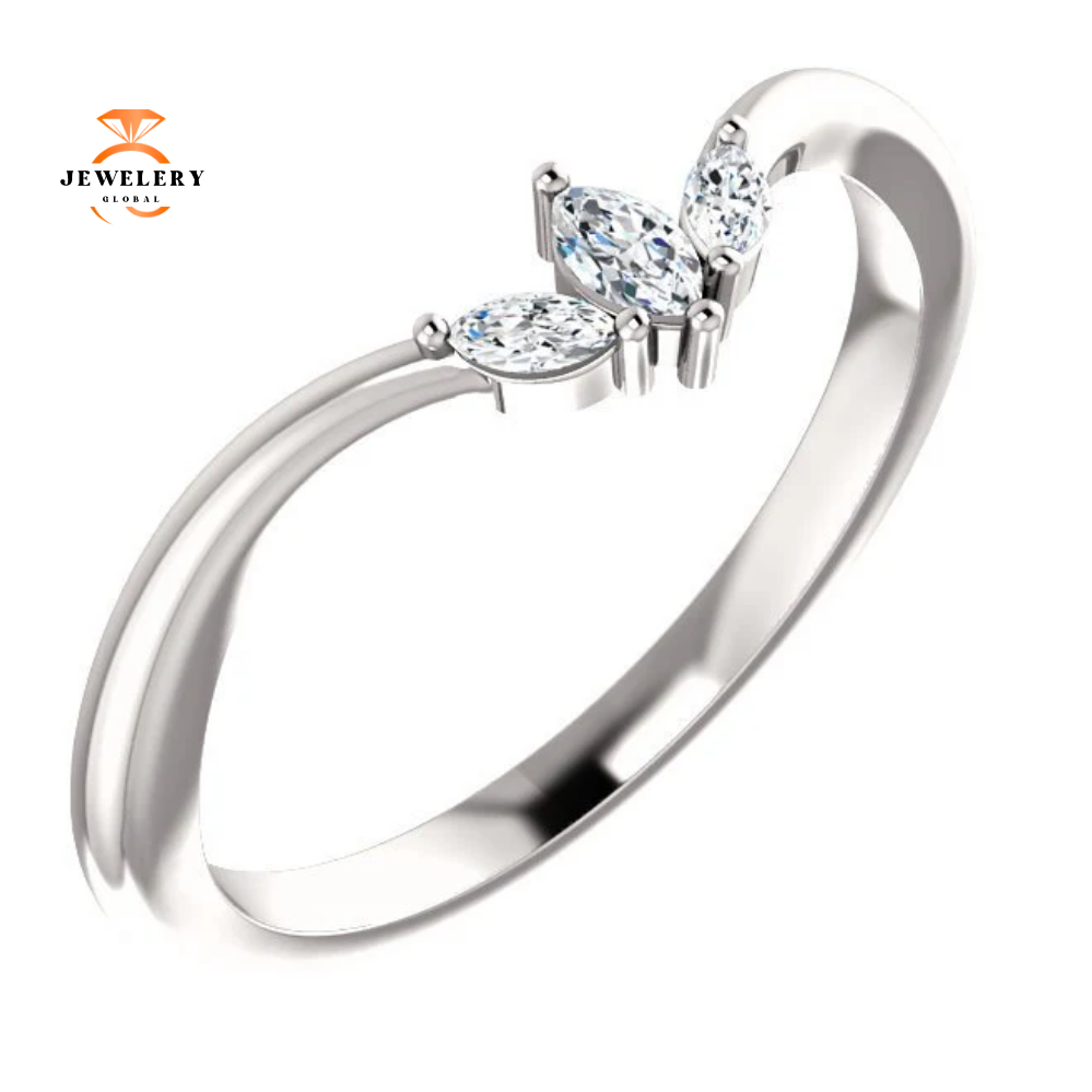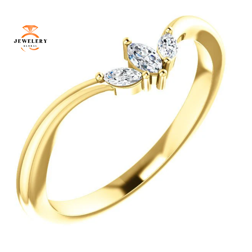 14 Karat Gold .125 Carat Total Weight Diamond “V” Ring.