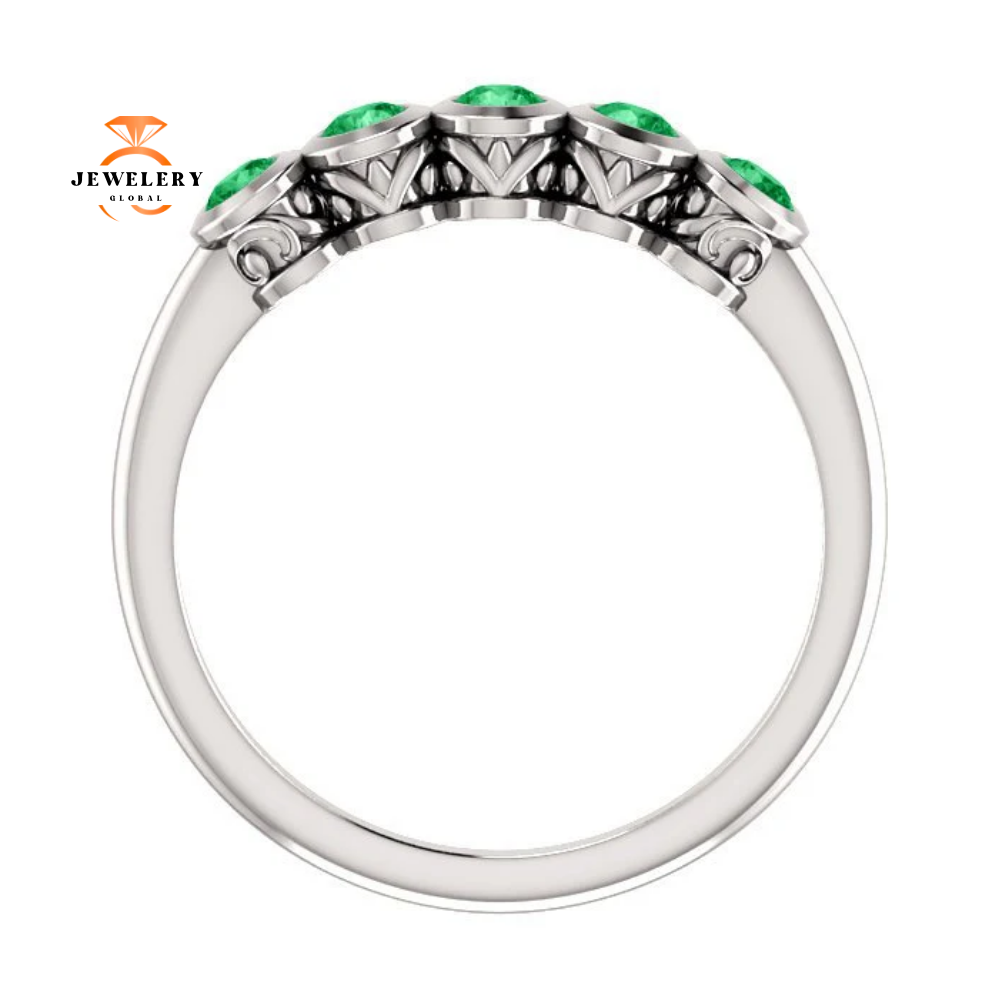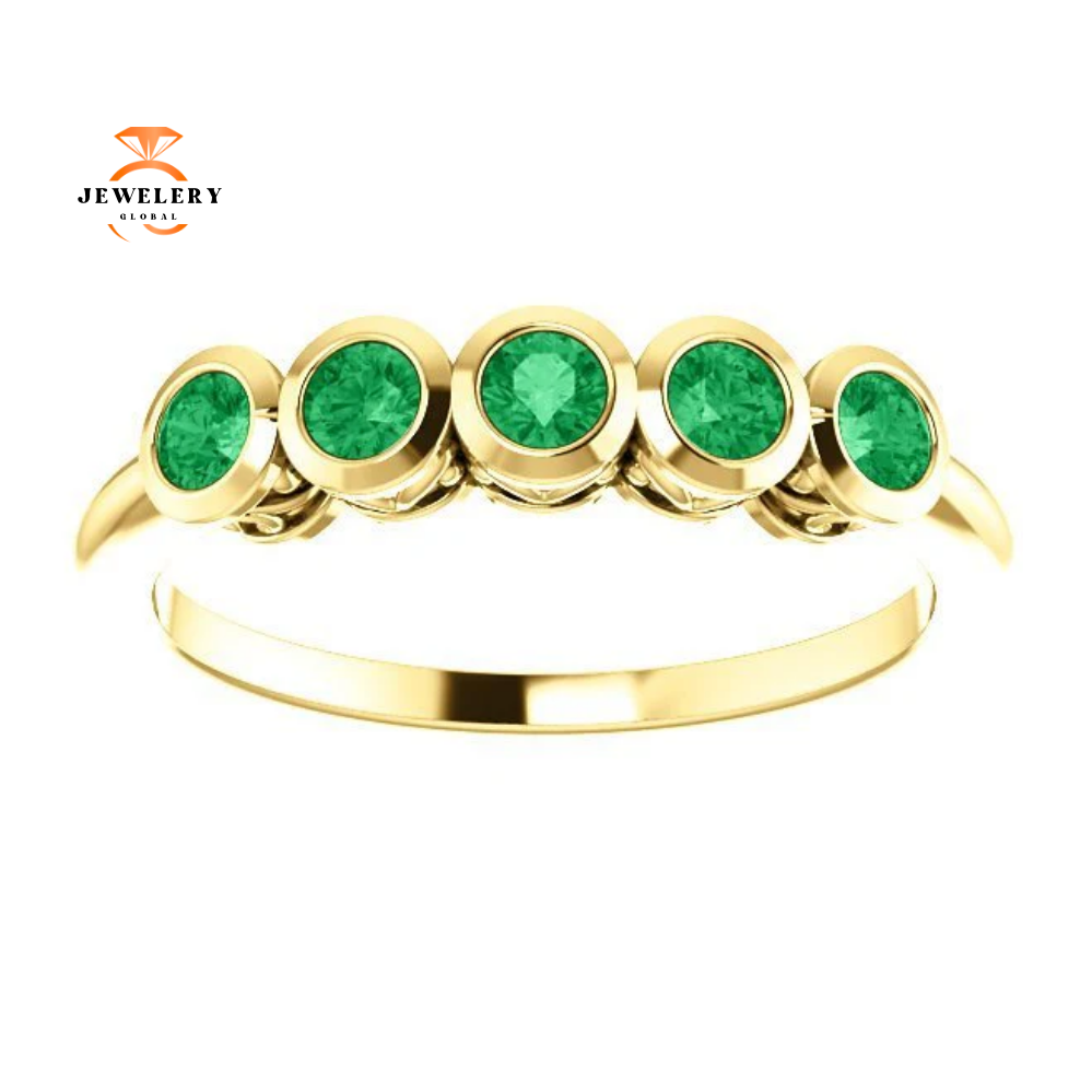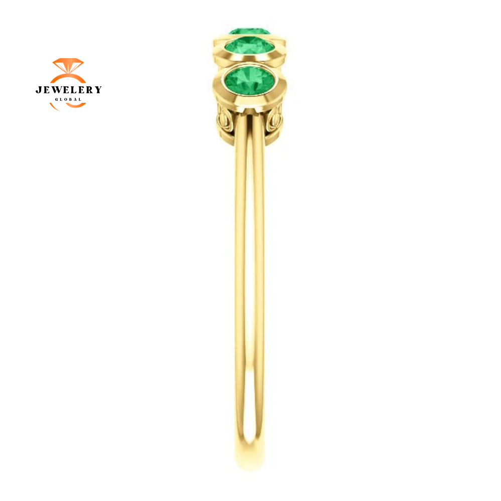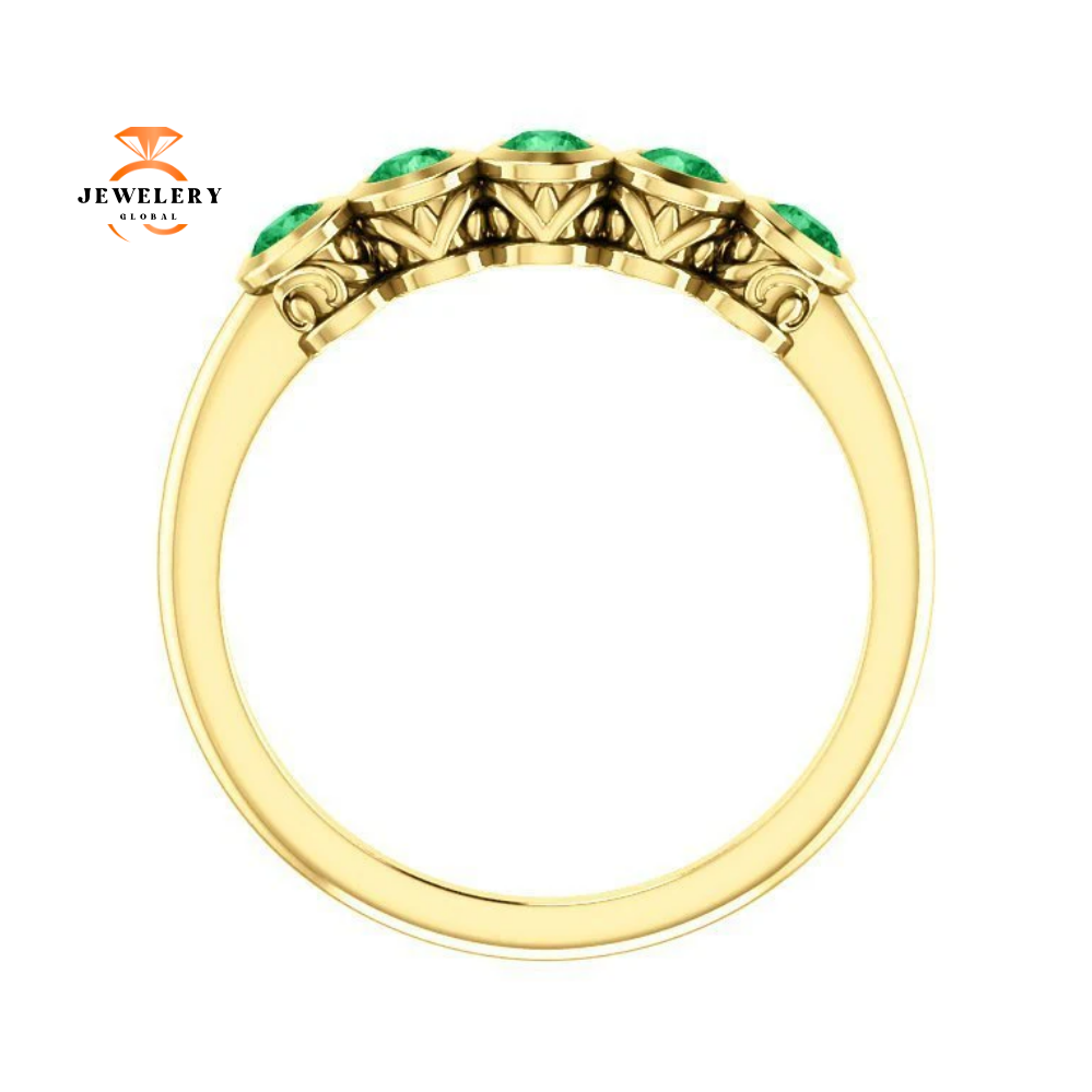 14 Karat Gold 0.30 CTW Genuine Emerald 5 Stone Ring.