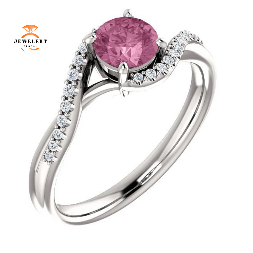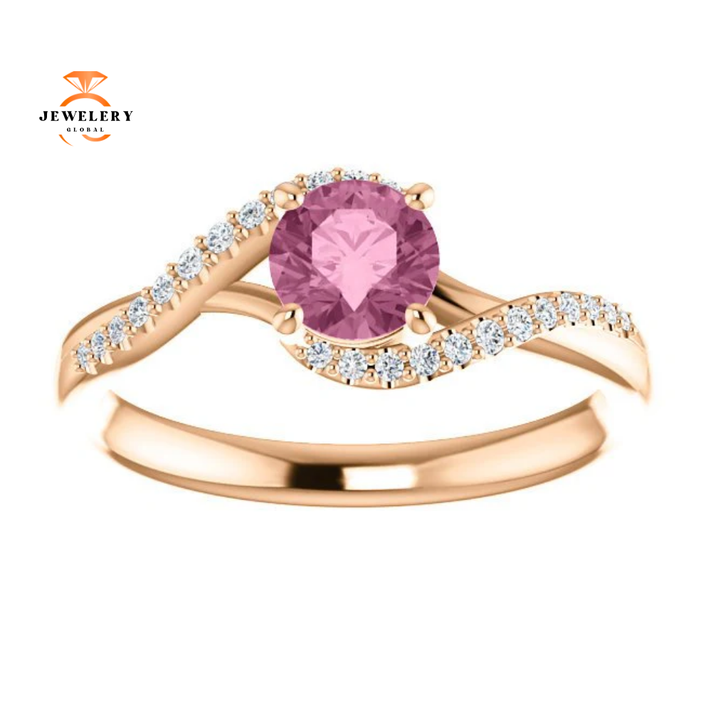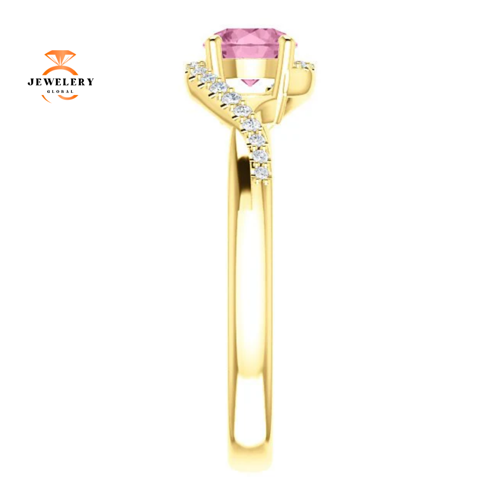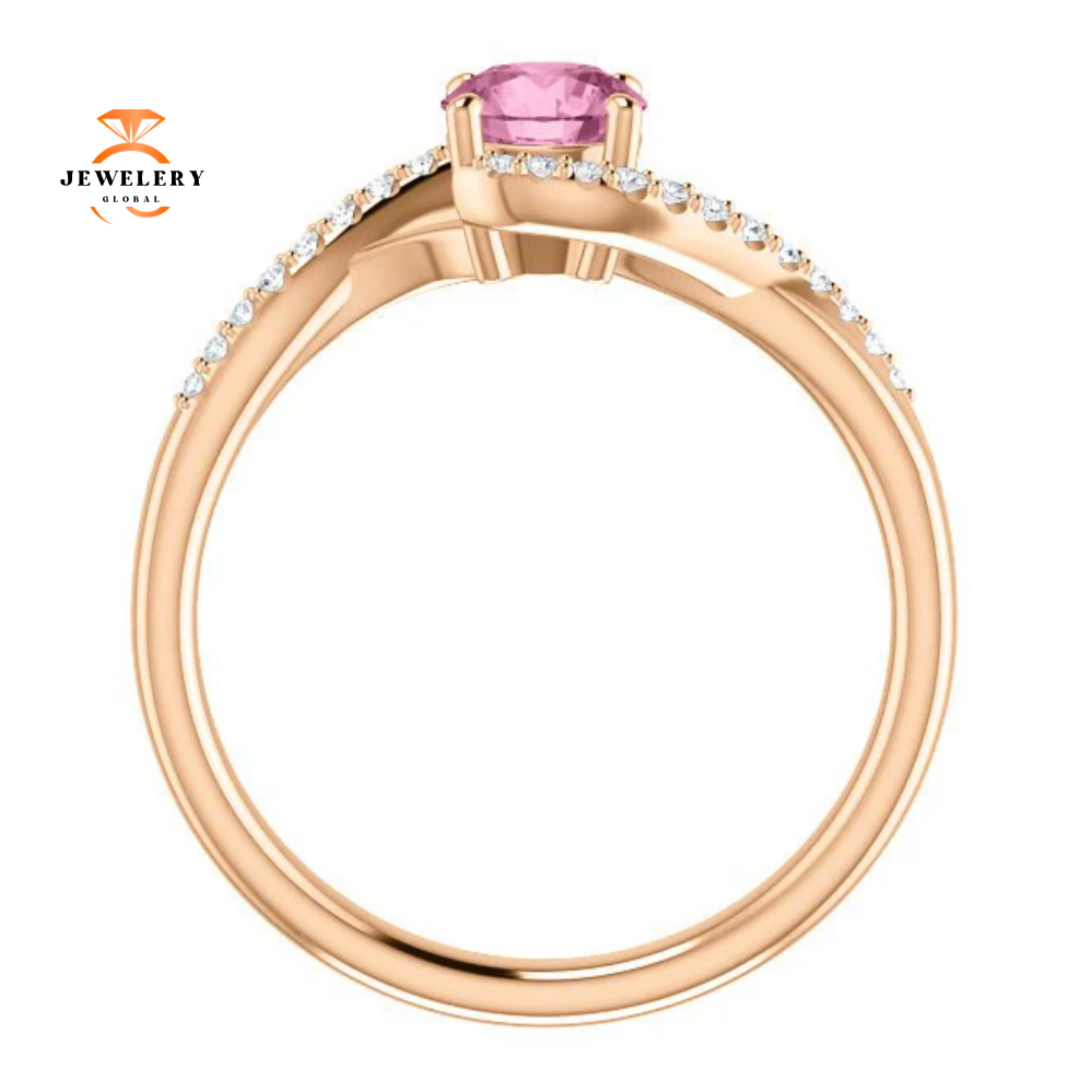14KT Gold 5MM Pink Passion Topaz and .10 CTW Diamond Accent Bypass Ring.