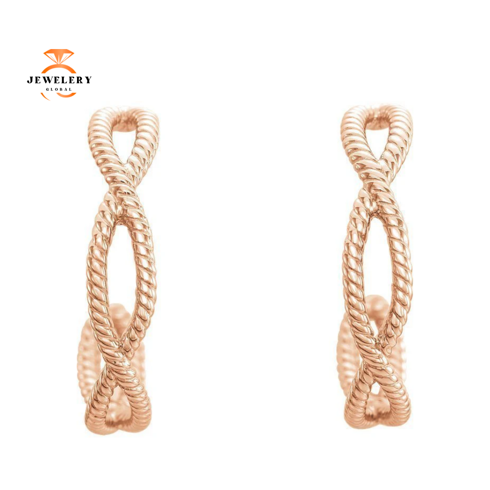 14 Karat Rose Gold Rope Twist Hoop Earrings. The Earrings Are 2/3 Inches Long.