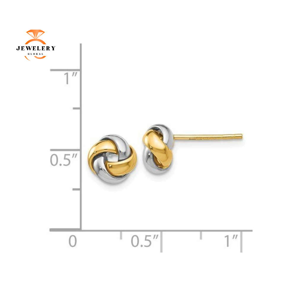Polished 14 Karat Two-Tone Knot Post Earrings. The Earrings Are 8 Millimeters In Diameter.