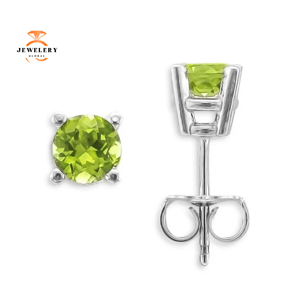 14 Karat White Gold 1.00 Carat Total Weight 5 Millimeter Round Peridot Earrings With Backs.