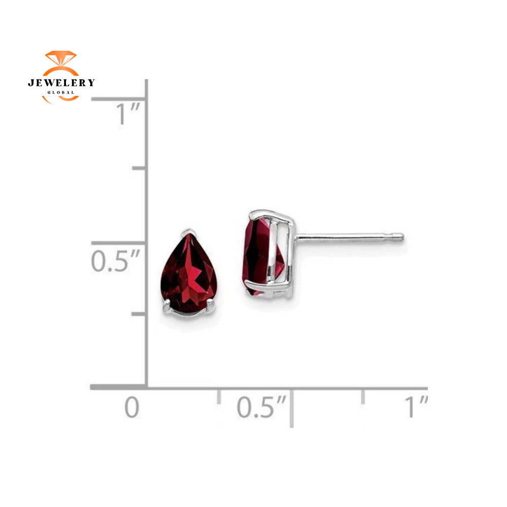 14KT White Gold 7x5MM Pear Shape Garnet Stud Earrings.