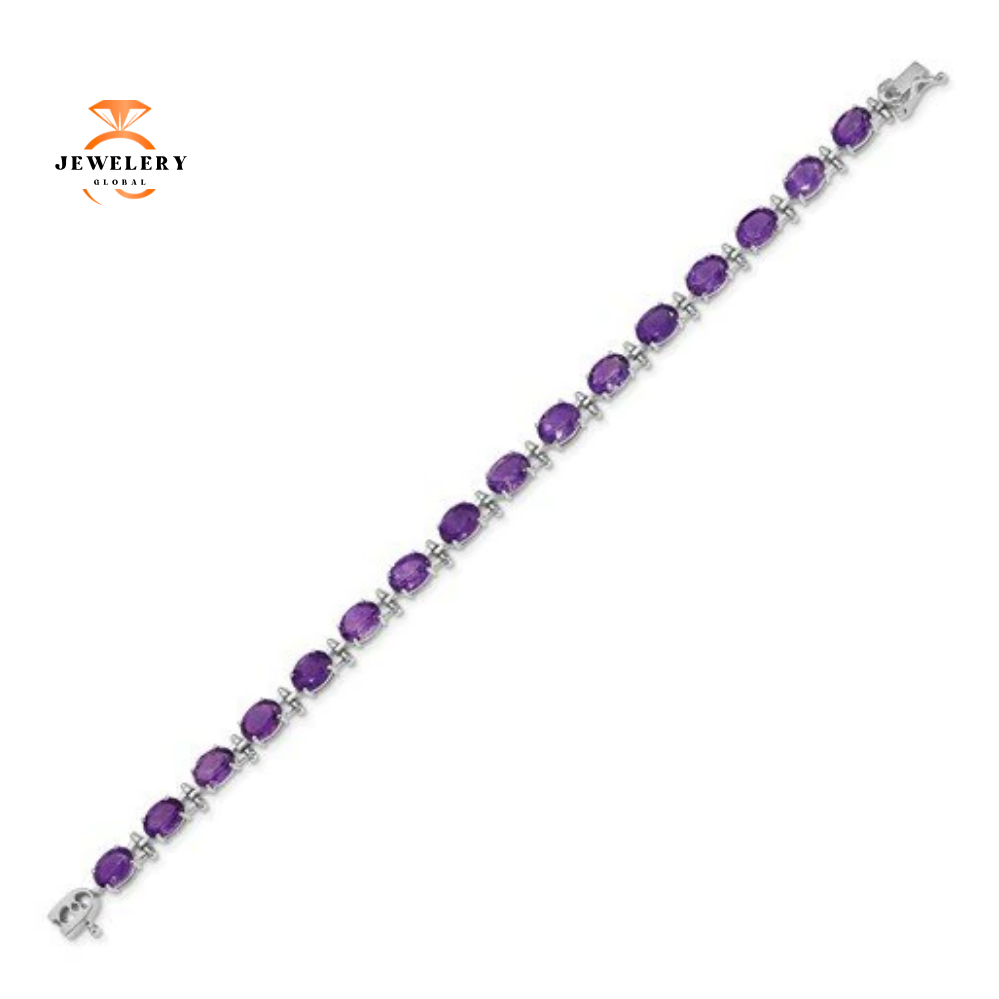 Be the first to review “14KT WHITE GOLD 11.20 CTW OVAL AMETHYST BRACELET”