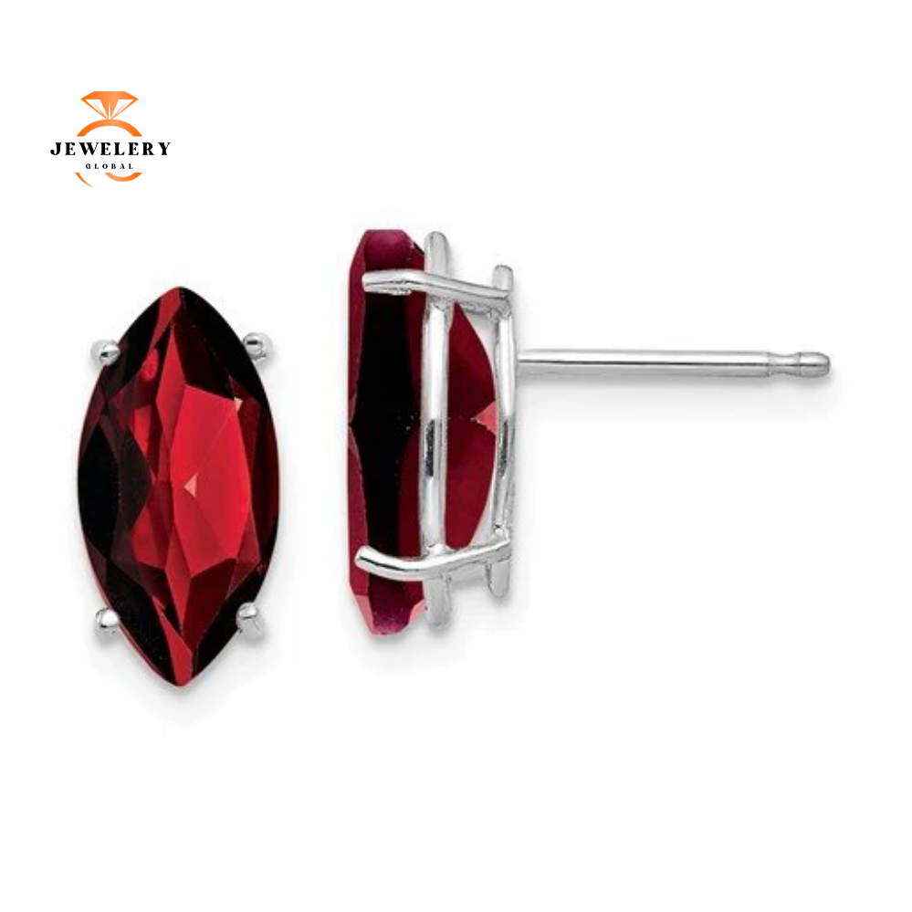 14KT White Gold 10x5MM Marquise Garnet Stud Earrings.