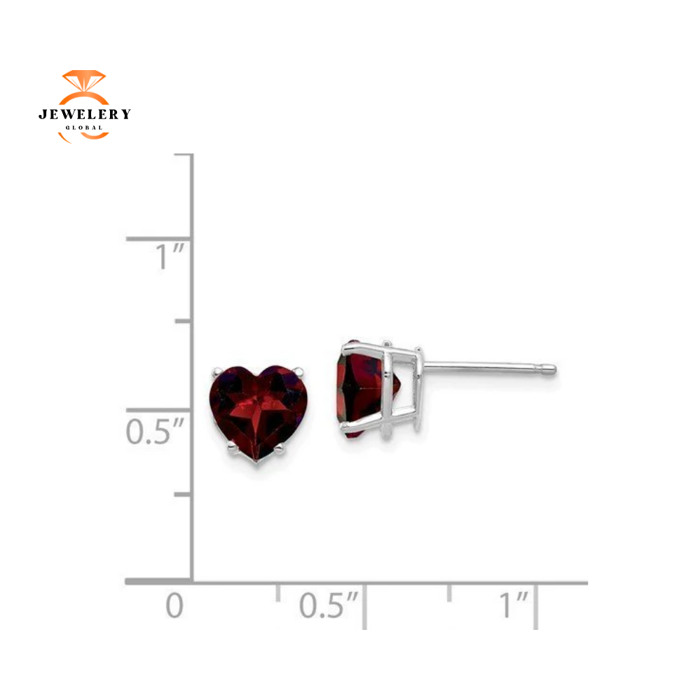14KT White Gold 7MM Heart Shape Garnet Stud Earrings. Earring Backs Included.