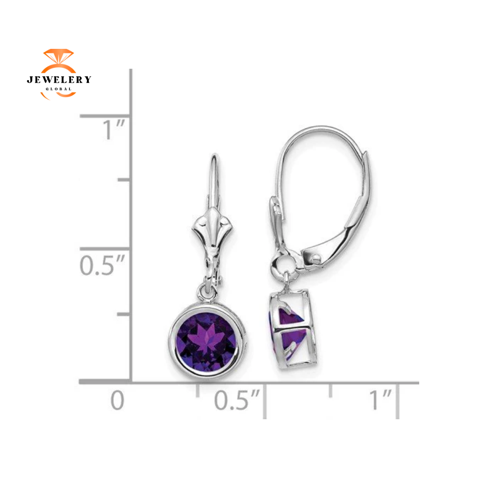 14KT White Gold Amethyst Dangle Leverback Earrings. The Earrings Feature 2 Round Amethysts that Have A Total Weight of 1.50 Carats. Each Amethyst Measures 6mm in Diameter.