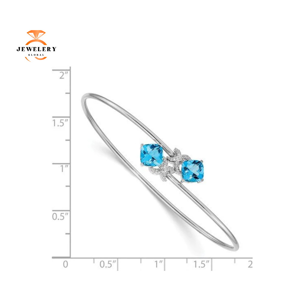14K White Gold Diamond & 2.50 Carat Total Weight Swiss Blue Topaz Flexible Bangle