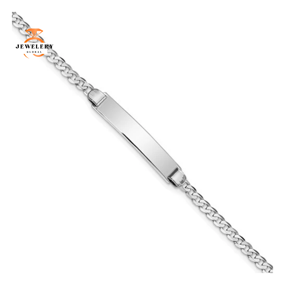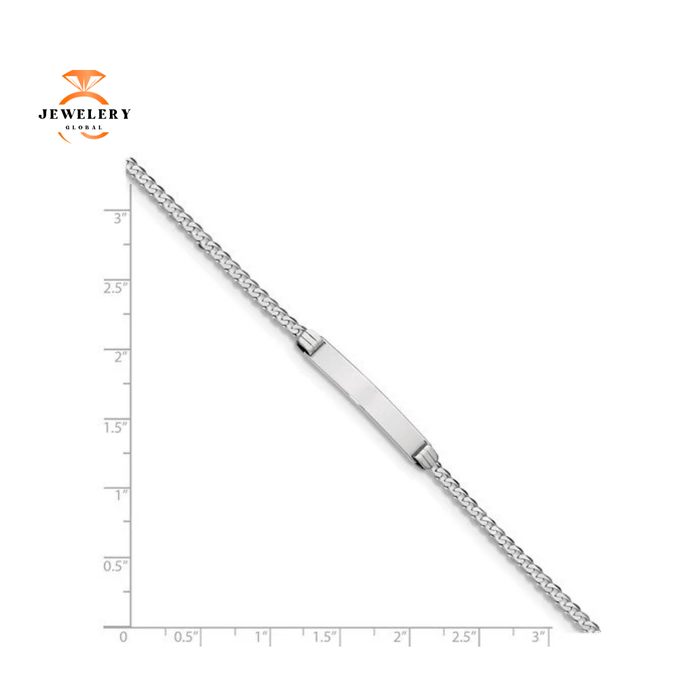 14 Karat White Gold 7 Inch Flat Curb Link ID Bracelet. Curb Link Chain Is 2.5 Millimeters Wide
