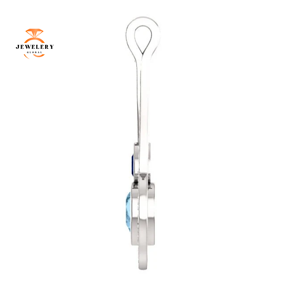 14KT White Gold 8X6MM Pear Cut Sky Blue Topaz, 5X3MM Pear Shape Blue Sapphire, and .50 CTW Round Brilliant Diamond Accent Drop Pendant.
