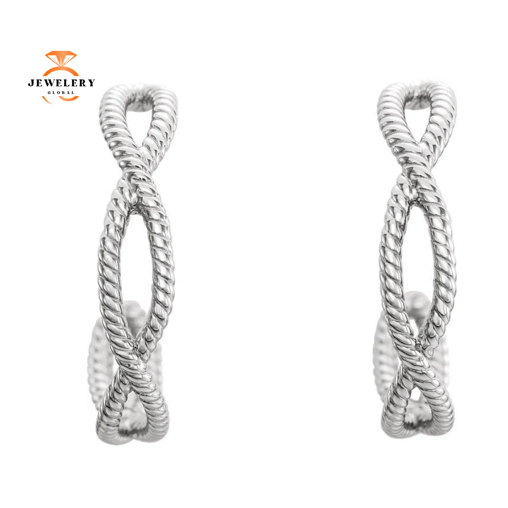 14 Karat White Gold Rope Twist Hoop Earrings. The Earrings Are 2/3 Inches Long.