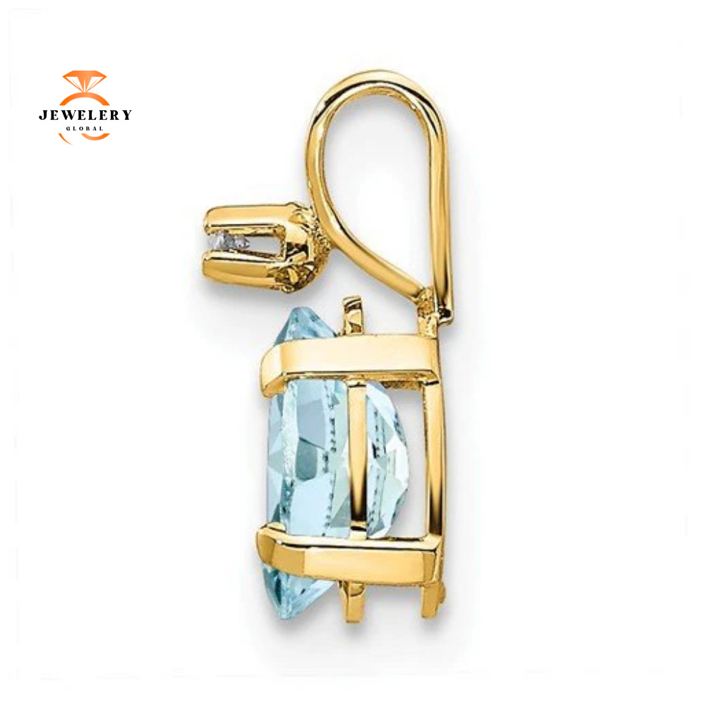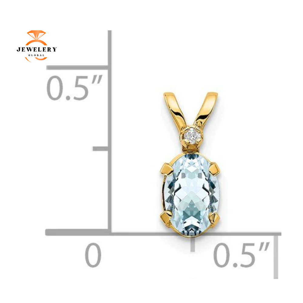 14KT Yellow Gold 6x4MM Oval Aquamarine and .008 CTW Round Brilliant Diamond Pendant.