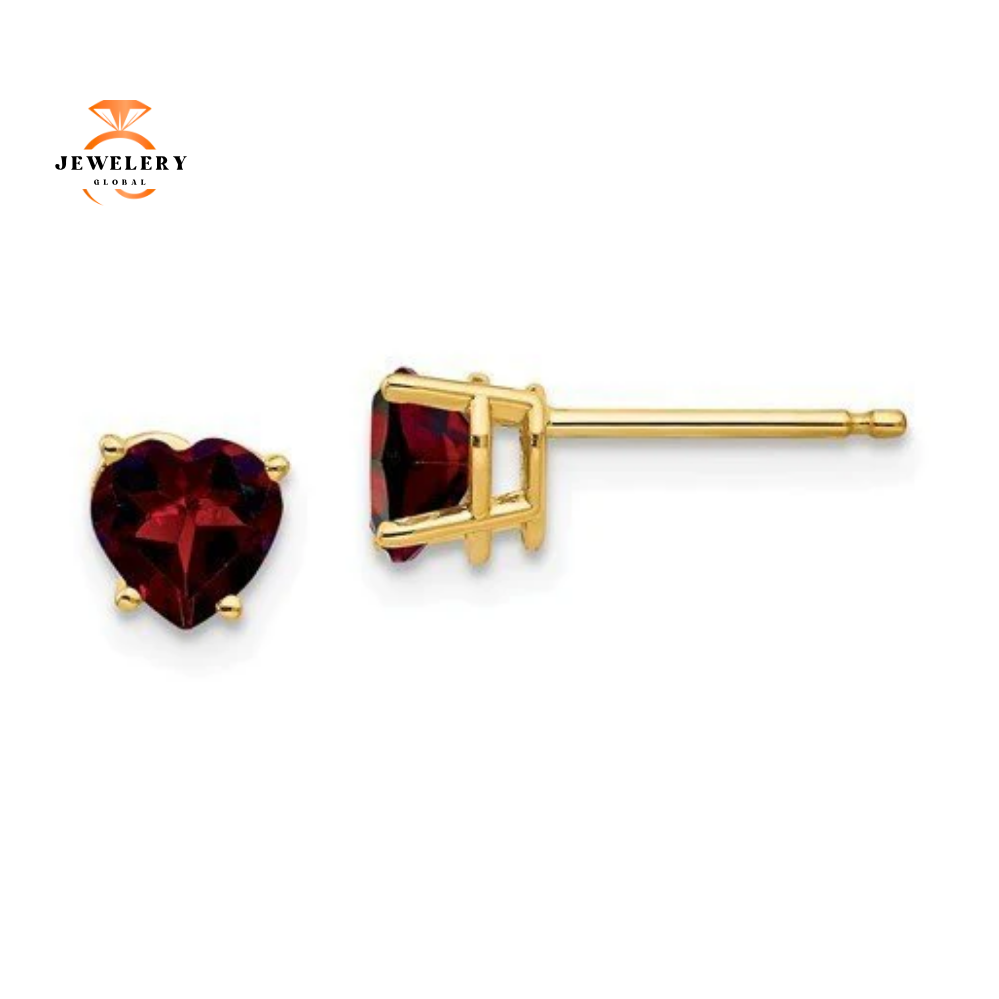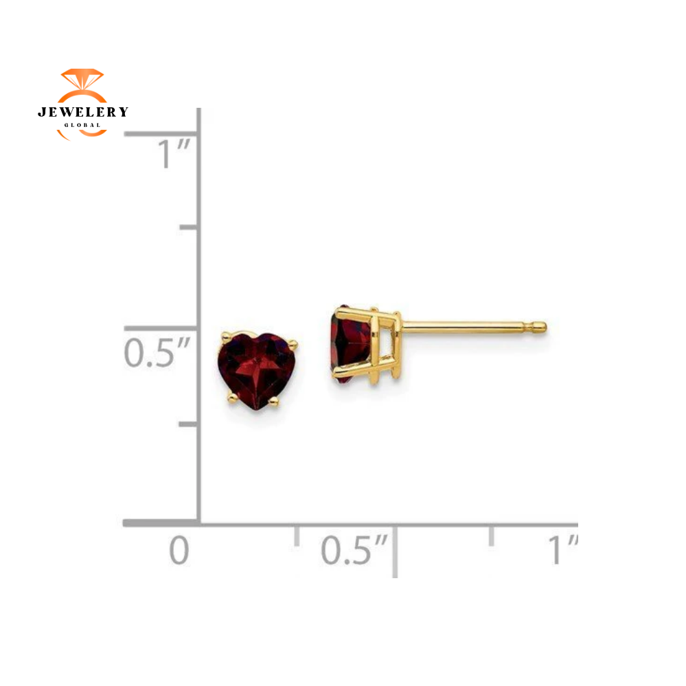 14 Karat Yellow Gold 5MM Heart Shape Garnet Earrings With Backs Included.
