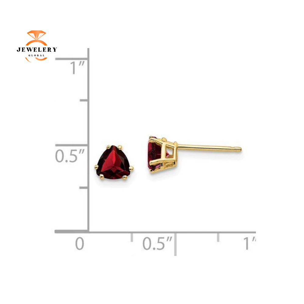 14KT Yellow Gold 5MM Trillion Cut Garnet Stud Earrings.