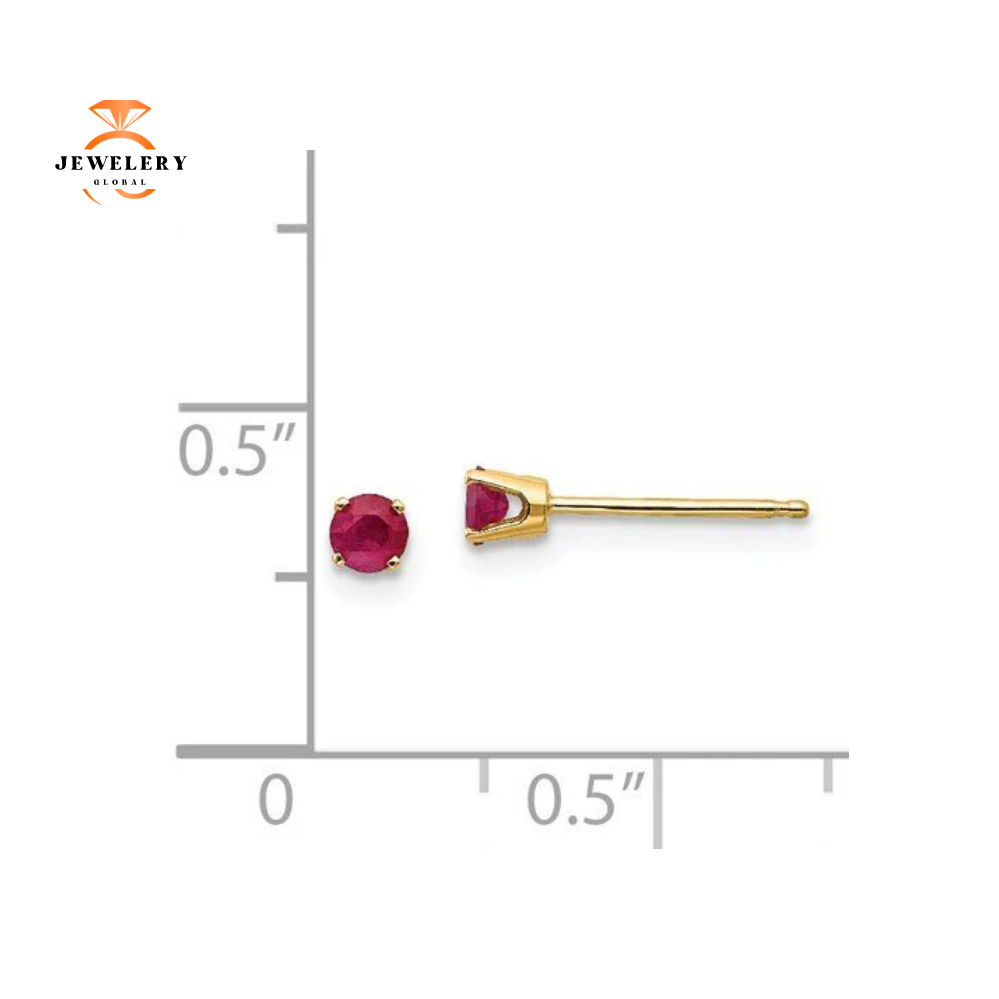 14KT Gold 0.33 Carat Total Weight (3MM Each) Round Ruby Stud Earrings.