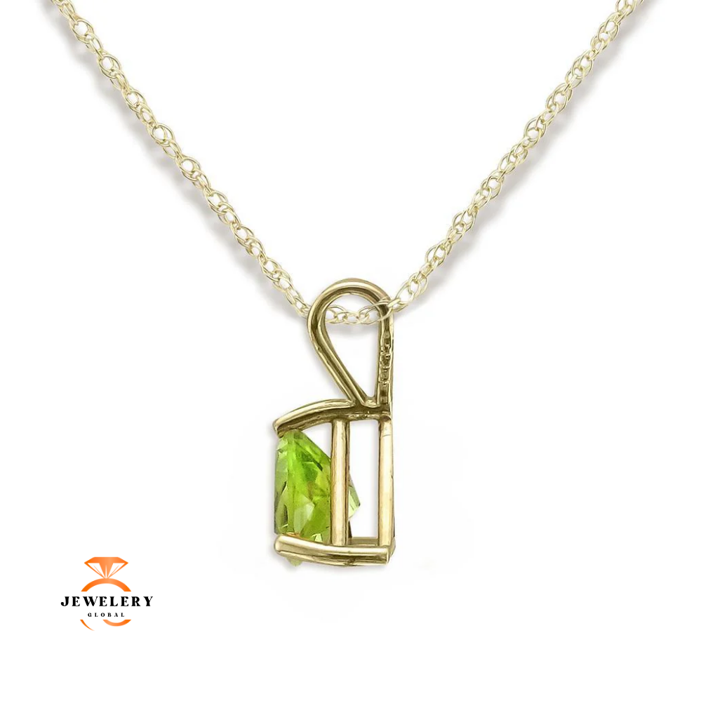 14KT Yellow Gold 1.30 CTW 7MM Trillion Cut Peridot Pendant With 14KT 18″ Chain.