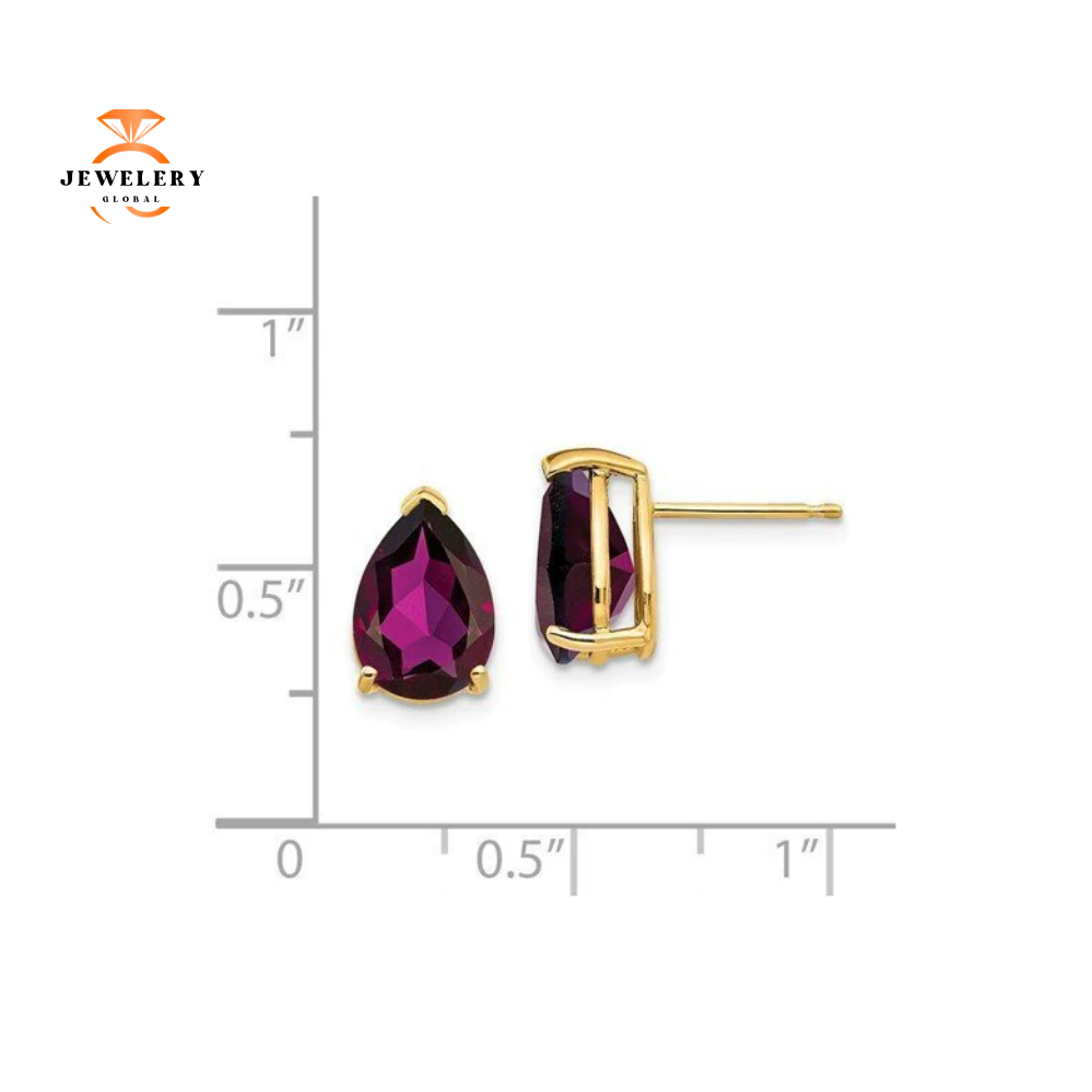 14 Karat Yellow Gold Pear Shape 1.70 Carat Total Weight 10×7 Millimeter Rhodolite Garnet Earrings With Backs.