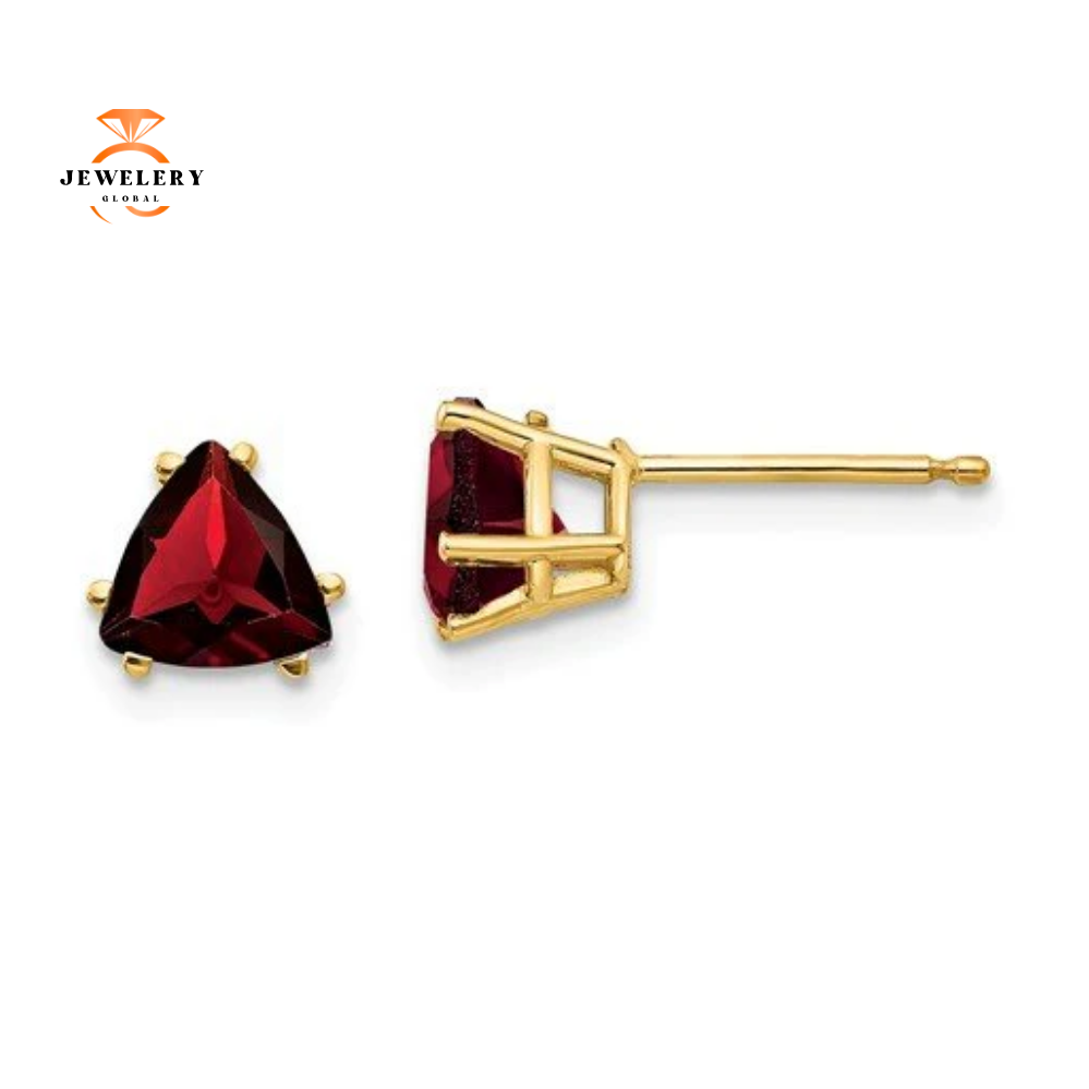 14KT Yellow Gold 6MM Trillion Cut Garnet Stud Earrings.