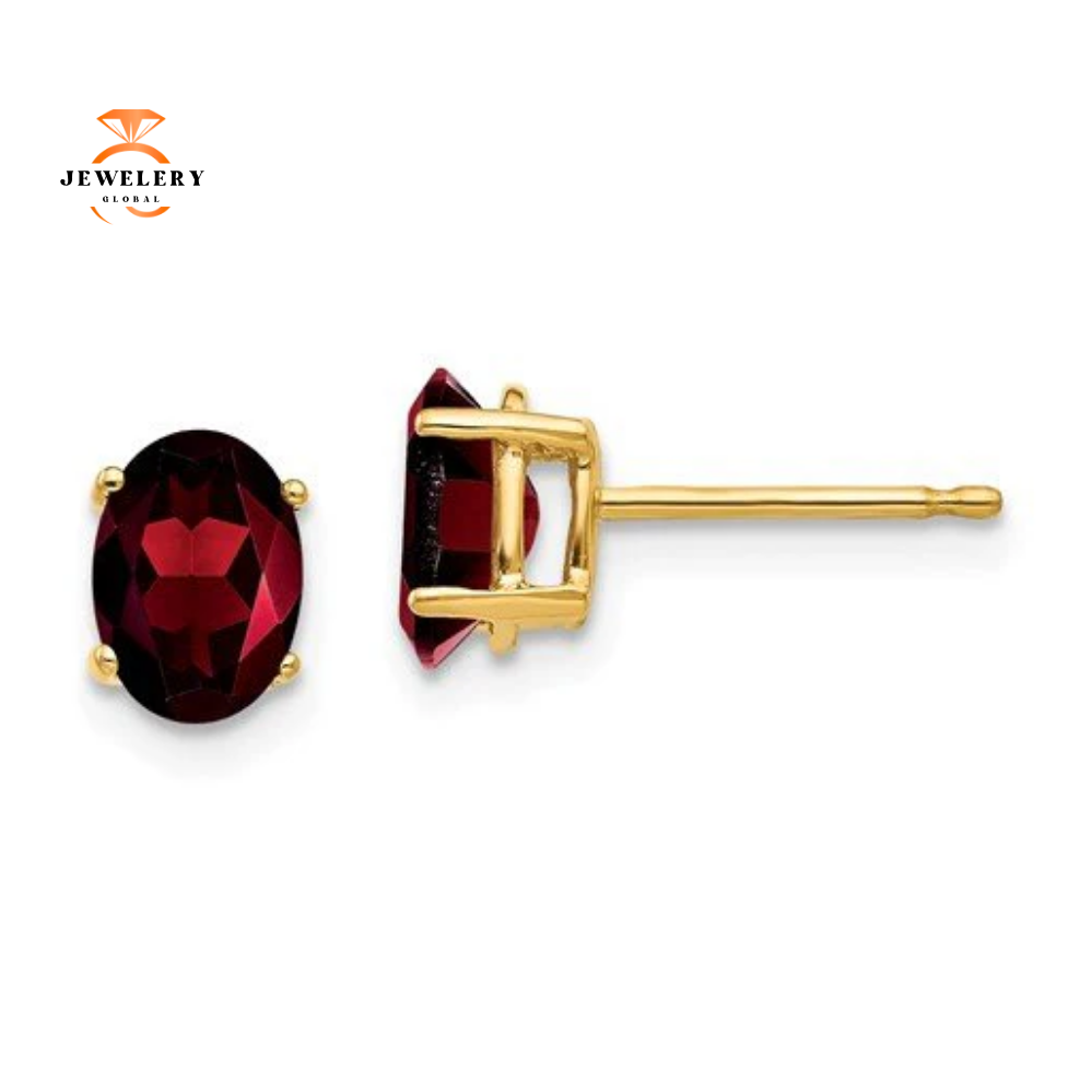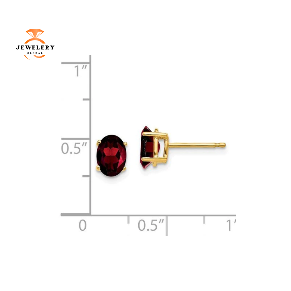 14KT Yellow Gold 7x5MM Round Garnet Stud Earrings. Earrings Backs Included.